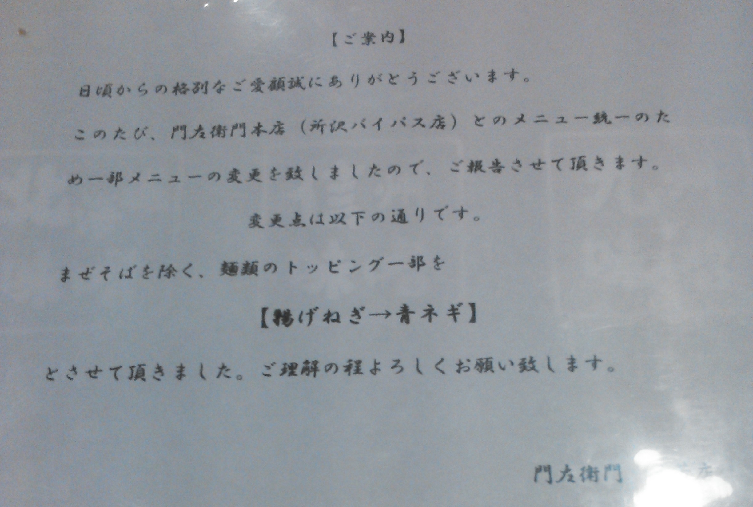 @“門左衛門”所沢バイパス本店とメニュー統一